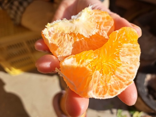 ちいさな太陽のようなみかんを食べてみました。たしかに、どこか「なつかしいみかん」の味。