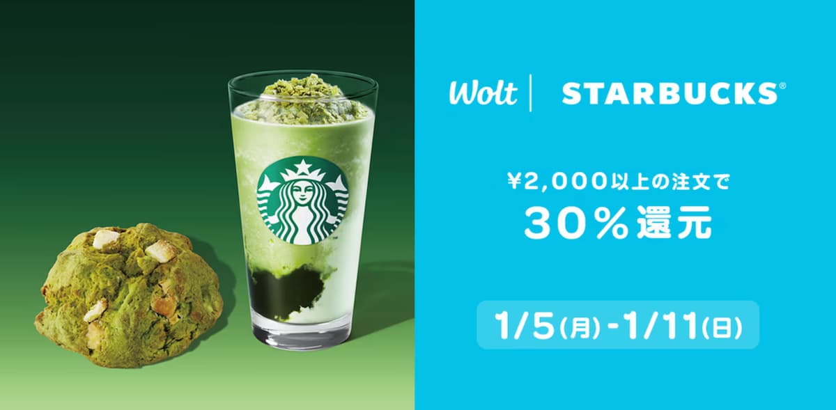 スターバックス限定!2,000円以上の注文で30%還元