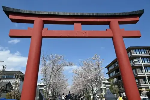 春には境内や周辺の桜が美しく咲き、歴史ある社殿との対比が印象的な景観をつくり出します。