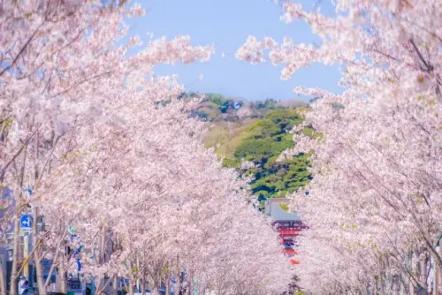 とくに参道の「段葛」は桜の名所として名高く、歴史ある景観とともに春の訪れを感じられる場所です。